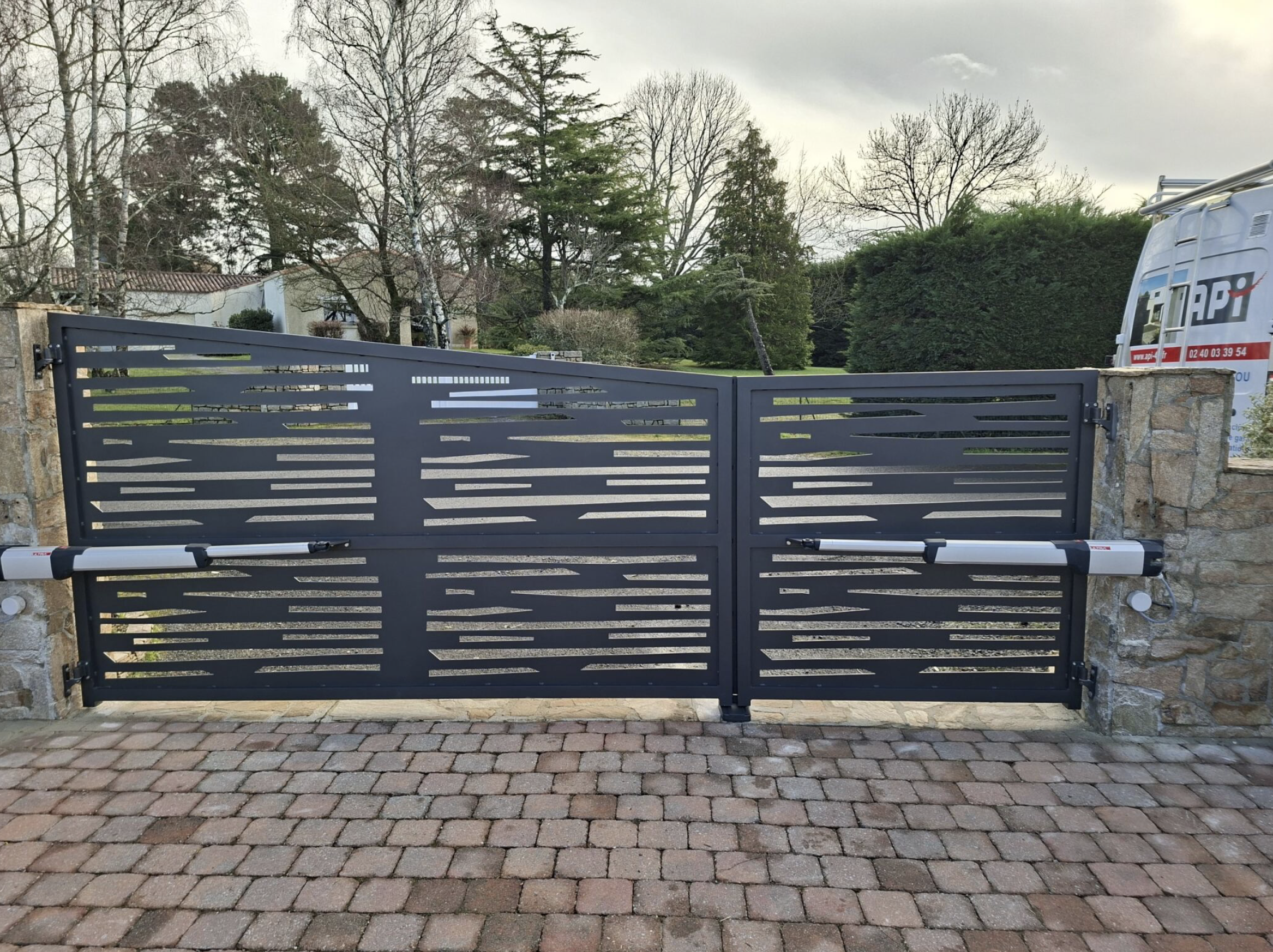 Parfaitement guidés dans notre choix de portail coulissant. La prise de contact, avec les démonstrations techniques en magasin, est très complète et détaillée. Quant à la pose, elle s'est déroulée dans une excellente ambiance, avec rigueur et précision, complétée par les explications nécessaires pour le fonctionnement du portail. Très contents du résultat, nous recommandons la société API, très professionnelle.